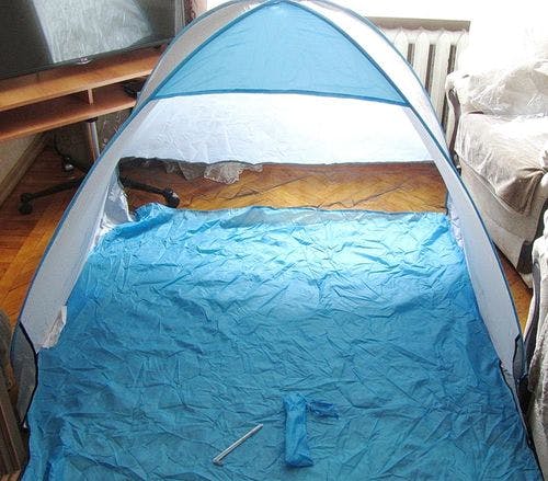 Great tent! Quality is excellent. Easily fit 2 adults. Unfolded in 1 second, collect also not a problem (i recommend to look at the video on youtube, so as not to damage the tent with the wrong addition). On the sides of the tent there are 2 small pockets for weighting (sand or stones), so as not to fly away and + a set of pegs for fixing. Summer will test. I recommend the product! shipping 13 days in usa