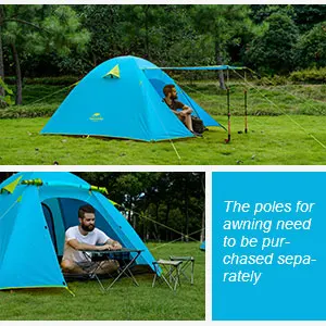 | The tent has a awning for great ventilation and view,It also can be rolled up when the weather is cool. (The poles for awning need to be purchased separately) | ||